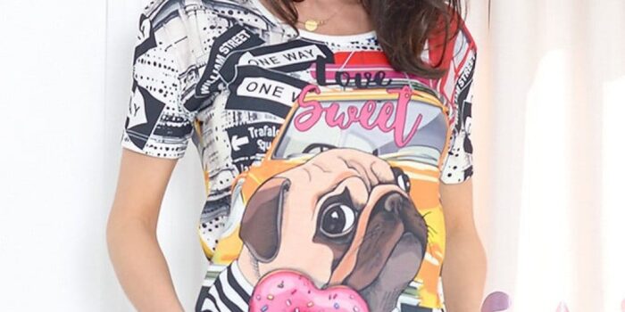 - Ținuta sportivă: un tricou de damă cu imprimeu poate fi purtat cu o pereche de pantaloni de trening sau colanți și pantofi sport pentru un look sportiv.